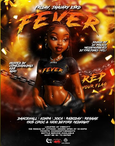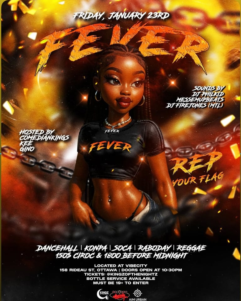 Fever is recognized as Ottawa's premier Caribbean party, showcasing a vibrant mix of Dancehall, Reggae, Zouk, Konpa, and Soca music. The event is organized by Kings Of The Night and features renowned DJ Philkid, creating an electrifying atmosphere for attendees.